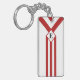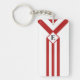 Red Stripes and Chevrons with Monogram on White Keychain
