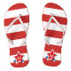 A bright and colorful red and white stripes pattern with a matching ribbon-embellished star graphic that contains your personalized monogram gets you ready for summer fun. These flip flops are a great choice for 4th of July parties and events or to show your patriotic pride all year. Personalize with your monogram.