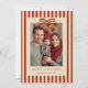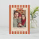 Celebrate the holiday season with this beautifully designed holiday card that captures the warmth and joy of the season. This stunning card features deep red stripes against a tan-colored background, creating a rich and inviting canvas for your festive greetings. The front of the card showcases a customizable photo frame, allowing you to add a cherished image that embodies the spirit of your holiday celebrations. Whether it's a family portrait, a candid moment, or a scenic winter landscape, this personal touch makes your card truly special. Adorning the card is a modern font that adds a touch of elegance and sophistication to your holiday message. This contemporary typography ensures that your greetings are presented with style and clarity. A charming red bow gracefully drapes over the photo, offering a playful yet sophisticated touch that enhances the overall aesthetic of the card. Ideal for families, couples, or individuals, this holiday card is designed to suit any celebration. Its elegant design makes it perfect for sending warm wishes and special memories to friends and family. Share the joy and warmth of the holiday season with this holiday card. It's a delightful way to express your love and happiness during this special time of year.