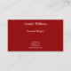 This pretty business card is perfect for any business or occupation. It features a red background with white stripes on the top and bottom of the front. A white stripe runs through the center. The back is a solid red. All text is customizable.