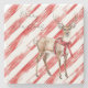 Red Stripes Deer Christmas Pillar Candle Stone Coaster
