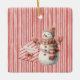 Red Stripes Jolly Christmas Snowman Ceramic Ornament