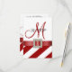 Red and White Monogram Wedding RSVP Cards with a diagonal stripes pattern and a PRINTED red satin ribbon with a PRINTED square diamond brooch on a flat card design. Layout Design by Elke Clarke ©2012. Graphics licensed. Customize with your monogram, names and wedding RSVP text using the prompts or select "customize it" for more editing options. Brides love the embellished invitation designs with jewels and ribbons until they get to the post office and realize that the invitation packets will cost so much more to send to their guests. These invitations and wedding collection accessories have the photo of the satin ribbon and the diamond brooch PRINTED on the flat card. You end up with the elegant effect without the extra cost and work of assembling your invitations. Please contact luxuryweddinginvitations@gmail.com for other colours or help with your design or any matching items you require.