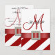 Red Stripes, Ribbon, Initial Wedding RSVP Card