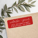 Custom printed wedding return address labels personalized with your name and address on a red background. Use the design tools to choose any background color and customize the fonts to create your own unique design.