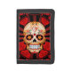 Red Sugar Skull with Roses Poster Tri-fold Wallet