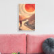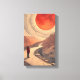 Embark on a contemplative journey to another world with this stunning and surreal canvas print. The artwork captures a lone figure in a red coat standing at the beginning of a winding stone path, set against a vast and desolate landscape. Above, a colossal, textured red sun or planet dominates the sky, its rings creating a sense of immense scale and otherworldly wonder.