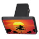 Gorgeous photo with bright late days color of the setting sun over the sea with palm tree, "Red sun at night Sailors Delight"