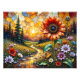 In Shades of Orange, Red and gold and a green, a red Sunflower grown near a valley stream surrounded by colorful wildflowers