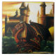 Red Sunset Castle Dragon Fantasy Ceramic Tile