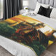 Red Sunset Castle Dragon Fantasy Fleece Blanket