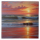Red Sunset Ocean Seascape Painting Artwork Ceramic Tile