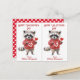 This cute Valentine postcard is designed to be easily cut into two cards. The image on each side is of an adorable raccoon wearing a red and white sweater and holding a heart lollipop. All the text is easily customized. The back has a pattern of white hearts on a red background. Perfect for elementary students to give to their friends at their school Valentine party, and economical, too! And teachers can also customize it to give out to students.