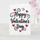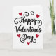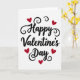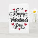 This Valentine's Day card features the text “Happy Valentine’s Day” in flowing black lettering placed right in the center on a white background. The words have smooth curves and a few extra loops that make the message feel warm and romantic. Around the text are five red hearts in a deep crimson shade. One heart sits above the word “Happy,” two are placed near “Valentine’s,” and two rest near “Day” to frame the message. The strong contrast of black and red against white makes everything easy to read at a glance. Overall, it feels simple, sweet, and full of love, perfect for a partner or a close friend 💕