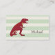 Cool, colorful kid's dark red t-rex dinosaur, dino, tyrannosaurus rex, prehistoric theme design on pastel mint green and off white stripes pattern. Perfect gift for baby, toddler, kids, children, teens, or adults! Personalized the design by adding a child's name or custom text. Visit our store, Birthday Party House, for more great customizable boy and girl products!