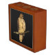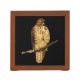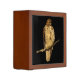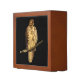 This striking pencil holder and desk organizer features a female Red Tailed Hawk (Buteo jamaicensis). One of the most widespread and commonly observed birds of prey in North America, this fierce hunter is perched on a branch high up in some evergreen spruce trees, patiently waiting for a meal to appear. Her head is brown and the creamy white breast has brown spots. The image is repeated on the back.