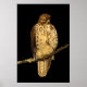 This fine art photography poster features a female Red-Tailed Hawk (Buteo jamaicensis). One of the most widespread and commonly observed birds of prey in North America, this fierce hunter is perched on a branch high up in a tree, patiently waiting for a meal to appear. Her head is brown and the creamy gold and white breast has brown spots. The red tail only is seen from the back.