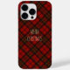 Personalize Adorable Red Christmas tartan pattern Case-Mate iPhone 14 Pro Max Case. Lovely festive Red plaid with customizable text Merry Christmas.
