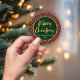 Red Tartan Plaid Gold Script Merry Christmas Classic Round Sticker