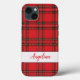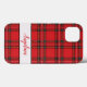 A gorgeous red tartan patterned phone cover. Customize the red black plaid design with your own name.