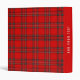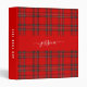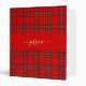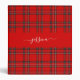 Modern 3 ring binder with a red tartan plaid design and a white scripted name. Personalize with your name on the cover and text on the spine.