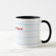 A handwritten style mug with a bright red colored teacher's correcting pencil laying on a white sheet of lined school paper. Personalize this scholastic design by signing your name. Perfect for writers, teachers, or students in middle school or junior high.