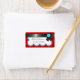 Beautiful & bold personalized address labels with red & teal color scheme and a black ribbon design with teal at the top.