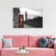 Canvas print of a selective color photo of a red telephone box in the city center of London, UK with the Big Ben in the background on Remembrance Day.