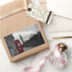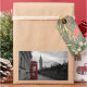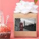Rectangular photo sticker of a selective color photo of a red telephone box in the city center of London, UK with the Big Ben in the background on Remembrance Day.