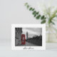 Postcard of a selective color photo of a red telephone box in the city center of London, UK with the Big Ben in the background on Remembrance Day with a white border and the tekst: 'London'.