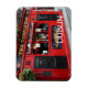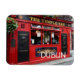 Rectangular souvenir fridge magnet with the famous red pub with the hanging flowers baskets in Temple Bar district in Dublin, the capital of Ireland and the text: 'Dublin'.