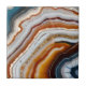 This is a high-quality multicolored white, black, blue, grey, orange, gold, brown and terracotta slice of agate geode close-up.