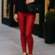 Red Textured Faux crocodile Leggings