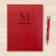 Red Textured Leather Monogram Personalized Name Planner