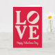 This greeting card features a rich red background that fills the whole front and sets a romantic mood ❤️. In the center, the word “LOVE” appears in large, off-white serif letters that stand out right away. The letters have a slightly dusty, textured look, like soft ink pressed onto paper. Below that, the text “Happy Valentine’s Day” sits near the bottom in smaller, flowing cursive-style lettering. That lower line is also light-colored, and it feels gentle next to the big, steady “LOVE” above. There aren’t any characters or objects shown—just strong color and clear text that keeps the focus on affection 💘. The simple layout makes the message easy to read and perfect for a partner, friend, or anyone you care about. Hope it helps you share a little extra love on Valentine’s Day.