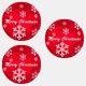 Red textured design with white and off white snowflakes Christmas sticker. The design features a red texture background with snowflakes and the text "Merry Christmas".