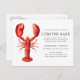 Personalized crimson red Lobster themed postcard invites for your next Lobster Bake Party or seafood event. It features a watercolor styled illustration of a red lobster. Surrounding this are spots for your unique event information.