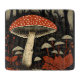 Woodcut print of a red toadstool mushroom. Also know as Amanita Muscaria and Fly Agaric.