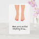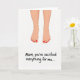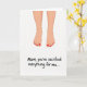 This card features a minimalist illustration of two bare human feet shown from the lower shins down, set evenly against a bright white background that feels calm and intimate. The skin is shaded in warm beige tones, and each toenail is painted a glossy red that draws the eye like a small, affectionate detail ❤️. The symmetrical pose suggests closeness, as if someone just finished a gentle at-home pedicure for someone they care about. Beneath the illustration, a message appears in thick black, handwritten-style lettering, centered near the bottom with generous spacing around it. The dark text stands out sharply on the white space, keeping the focus on both the words and the quiet tenderness of the image. With so much open background, the red polish reads like a tiny gift, adding a soft touch of care 🌼. The final detail is the neat row of bright red toenails aligned across both feet above the centered black message.