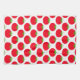 A pattern of red tomatoes on a white background. A salad food themed item. The tomatoes have a green top.