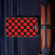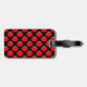 A pattern of red tomatoes with green tops, on a black background. A food themed design.