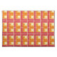 This cloth placemat has a geometric design of L's in red, orange, and yellow, placed in different directions on a field of white.