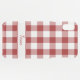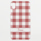 Classic red and transparent gingham plaid pattern is made of red, clear, and light red squares in a bold buffalo check with a white stripe with a custom script name near the bottom third of the case. Customize it with your name or text in the sidebar.