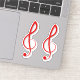 This design features red treble clef music notation symbols. It might be a fun gift for a musician or somebody who loves music.