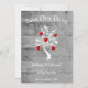 Personalize a unique wedding announcement with a Red Tree of Hearts Save the Date. Announcement design features a gray wooden background adorned with a tree with blooming hearts on its branches and text you can personalize with your wedding date details. Additional save the date announcement available for this design in a variety of colors.