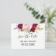 This red tropical and romantic save the date card is perfect for a rustic wedding. The artistic bordo marsala design features watercolor, green, pink, burgundy and blush roses assorted with greenery neatly arranged in a graceful and radiant flower bouquet
