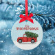 Red Truck Christmas Tree in Snow Cute Personalized Ceramic Ornament