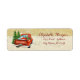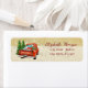 Red truck, presents, and pine trees on faux gold glittery background. An elegant and sophisticated design. Customize with your name and address.