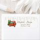 Red truck with presents, pine trees, and string lights on white background. An elegant and sophisticated design. Customize with your name and address details.