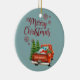 Red Truck Pine Tree Merry Christmas Ceramic Ornament